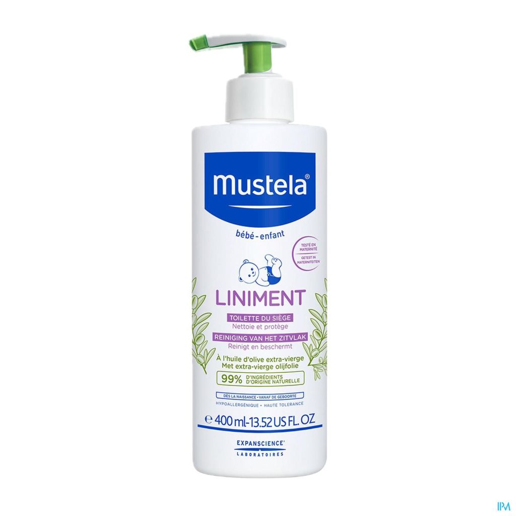 Le Liniment est un soin nettoyant naturellement doux, à utiliser quotidiennement pour la toilette du siège du bébé, dès la naissance(1).