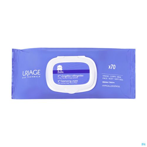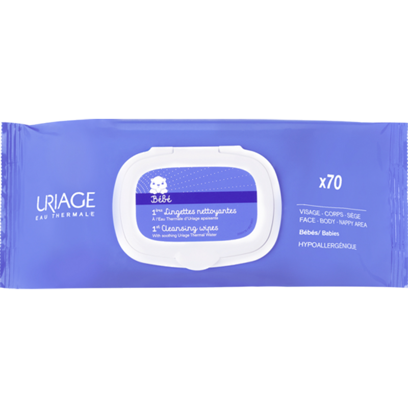 A base d'Eau Thermale d'Uriage, ces lingettes douceur nettoient en douceur les peaux délicates des bébés sans risque d'irritation.