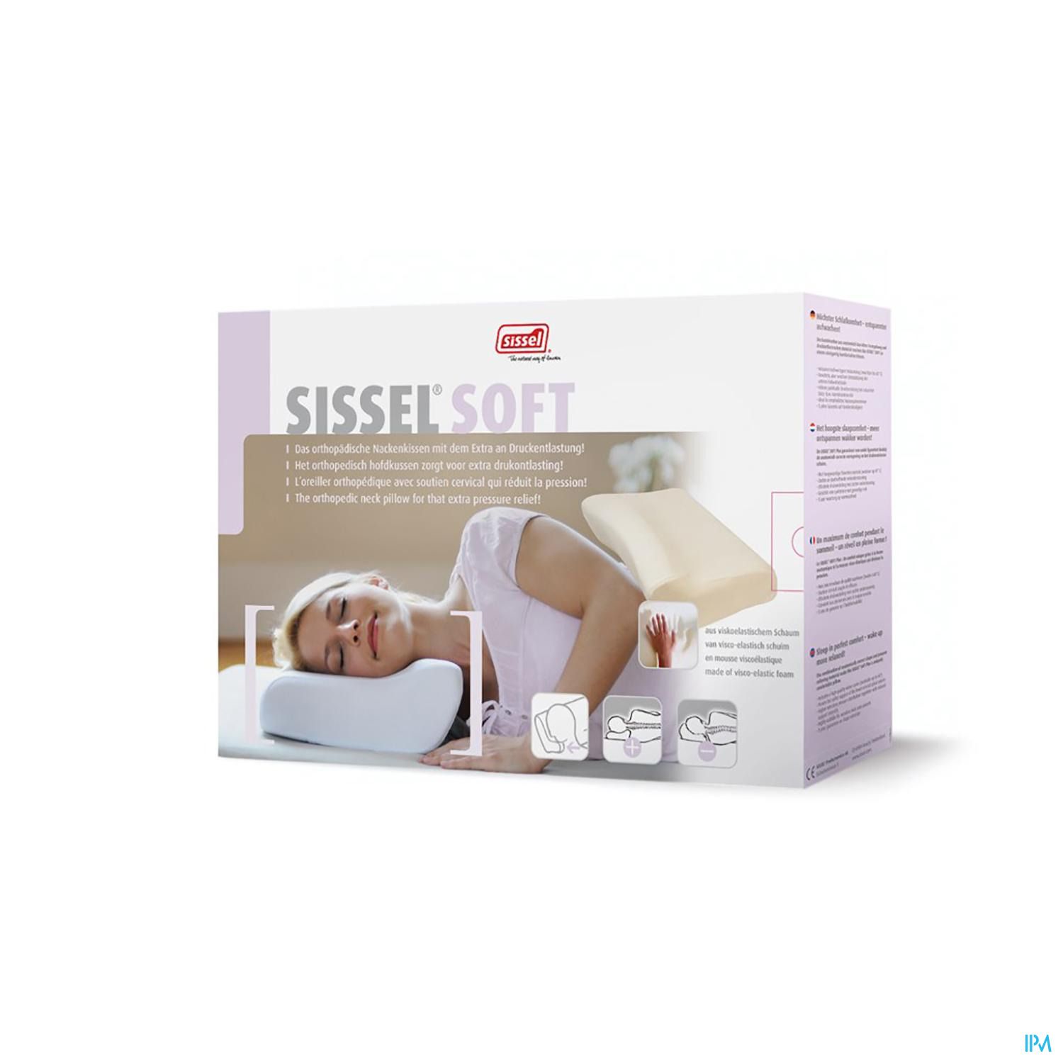 Oreiller orthopédique doux Sissel en mousse visco-élastique. Ce matériau spécialement développé par Sissel assure un équilibre optimal entre un bon soutien de la nuque et une position couchée confortable. Le Sissel Soft, avec sa forme incurvée brevetée, épouse parfaitement la courbe de votre épaule et assure également en position latérale une position couchée détendue et un soutien optimal de la colonne vertébrale. Ainsi, vous êtes assuré d'un repos nocturne sain.