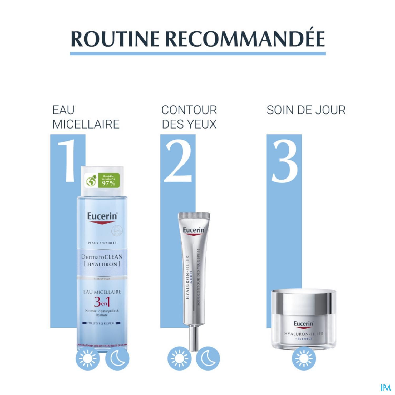 La Lotion Micellaire 3 En 1 Eucerin DermatoClean est une solution rafraîchissante et nettoyante qui :