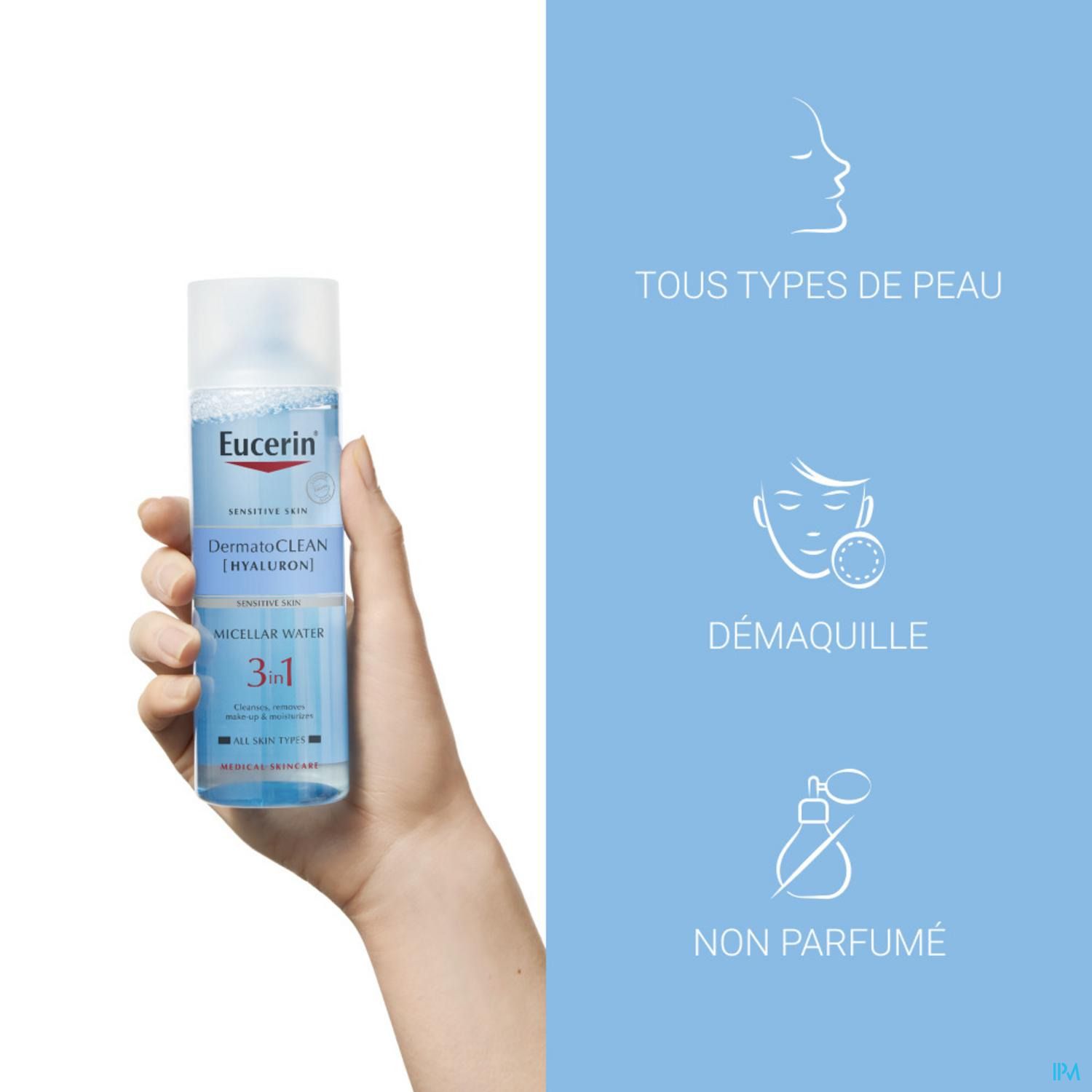 La Lotion Micellaire 3 en 1 Eucerin DermatoCLEAN est une solution rafraîchissante et nettoyante qui :