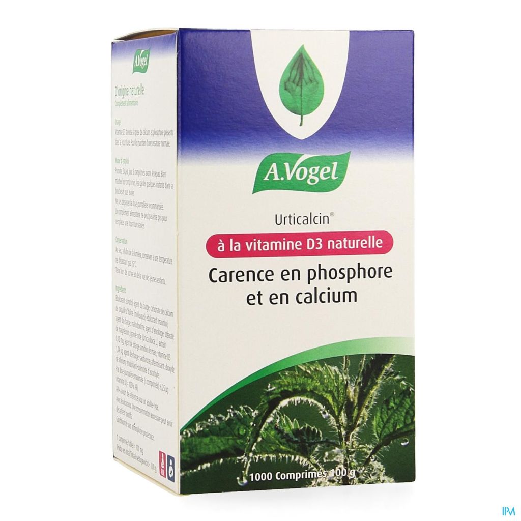 A.Vogel Urticalcin à la vitamine D3 naturelle est un complément alimentaire utilisé pour le maintien d'une ossature normale grâce à la vitamine D3 naturelle qui contribue à l'absorption normale du calcium et du phosphore.