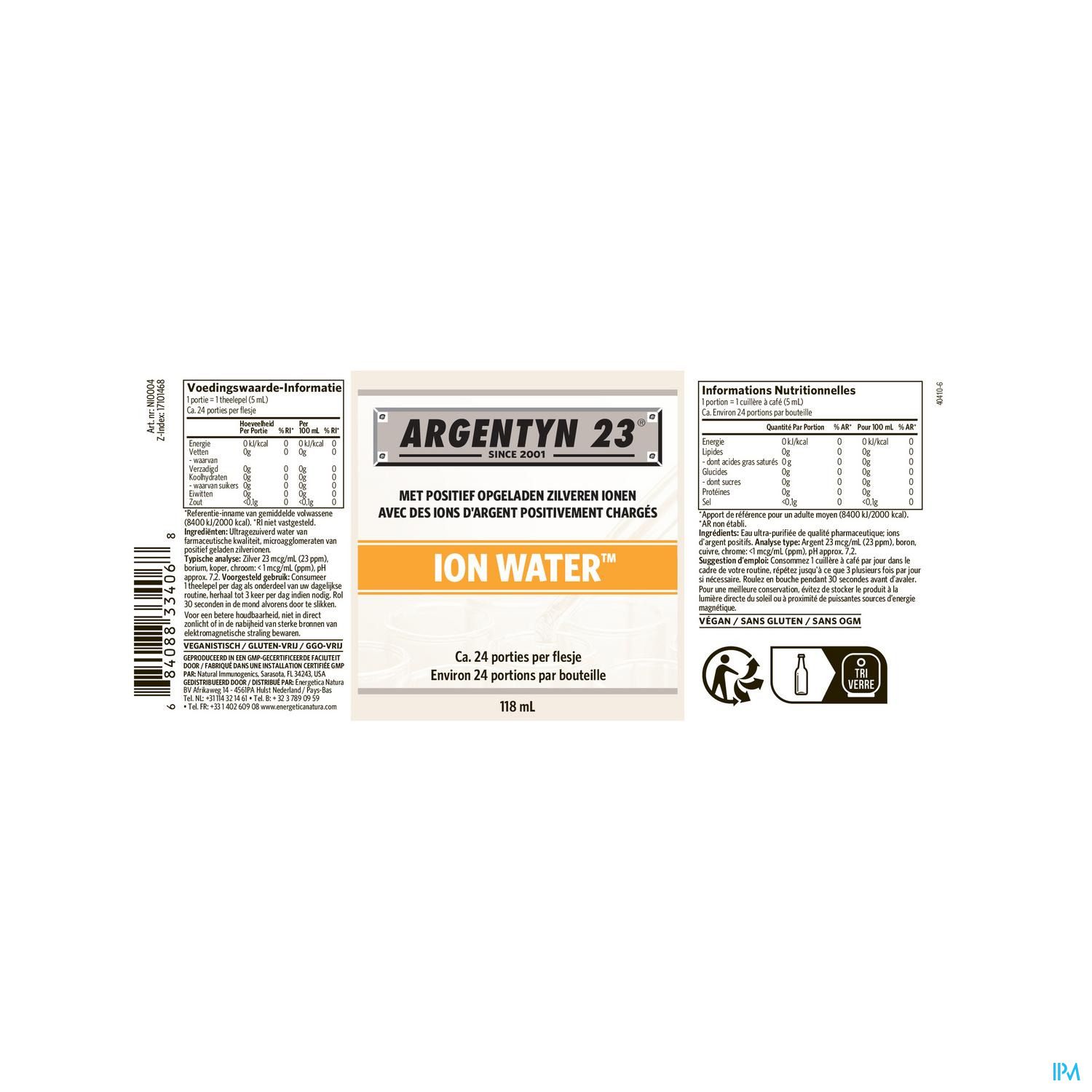 Argentyn 23 Ion Eau contenant des ions d'argent chargés positivement.