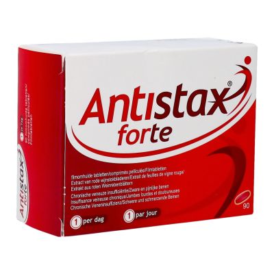 Antistax Forte comprimés pelliculés, extrait sec de feuilles de vigne rouge. Médicament à base de plantes pour les maladies veineuses. Antistax Forte est utilisé chez les adultes pour le traitement de l'insuffisance veineuse chronique caractérisée par des jambes fatiguées, lourdes et douloureuses, des crampes nocturnes dans les mollets, des démangeaisons et œdèmes (jambes gonflées).