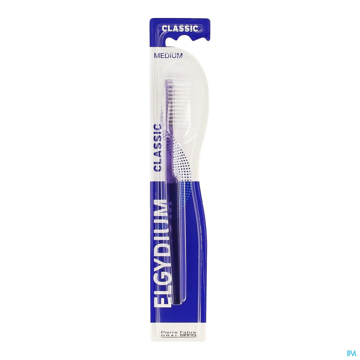 La Brosse à dents intemporelle à tête large qui bénéficie de la technicité Elgydium (brins en Tynex garantissant une qualité de brins non traumatisants pour les dents et gencives).