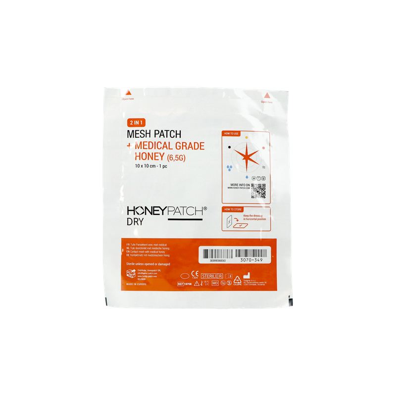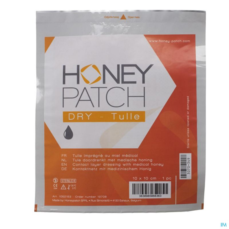 Honey Patch Dry Tulle 10 x 10 cm est un tulle stérile imprégné de miel antibactérien.