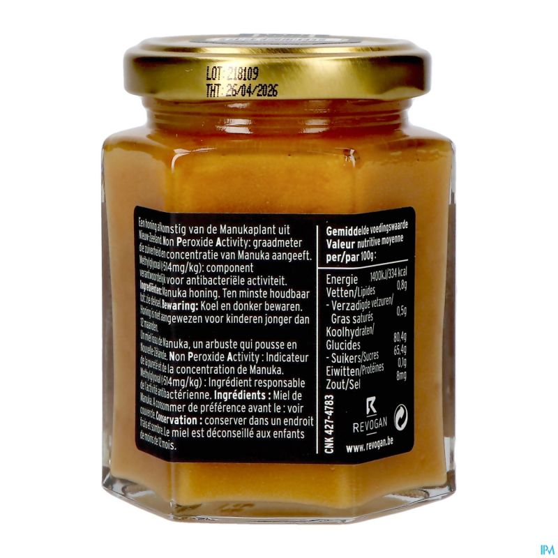Non Peroxide Activity (NAP) : 15+, mesure indiquant la pureté et la concentration du Manuka.