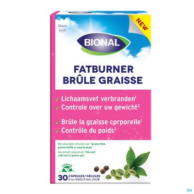 Bional Fatburner est un complexe nutritif contenant du resvératrol, de la carnitine, du chrome, de l'iode et des extraits naturels de thé vert, de café vert, de bambou et de poivre noir. Le thé vert favorise la consommation d'énergie et contribue à la combustion des graisses. En outre, le thé vert aide à contrôler le poids et le poivre noir soutient l'efficacité des autres extraits de plantes. L'iode favorise un métabolisme énergétique normal et le chrome contribue au maintien d'une glycémie normale. À combiner avec un régime alimentaire sain et de l'exercice physique.