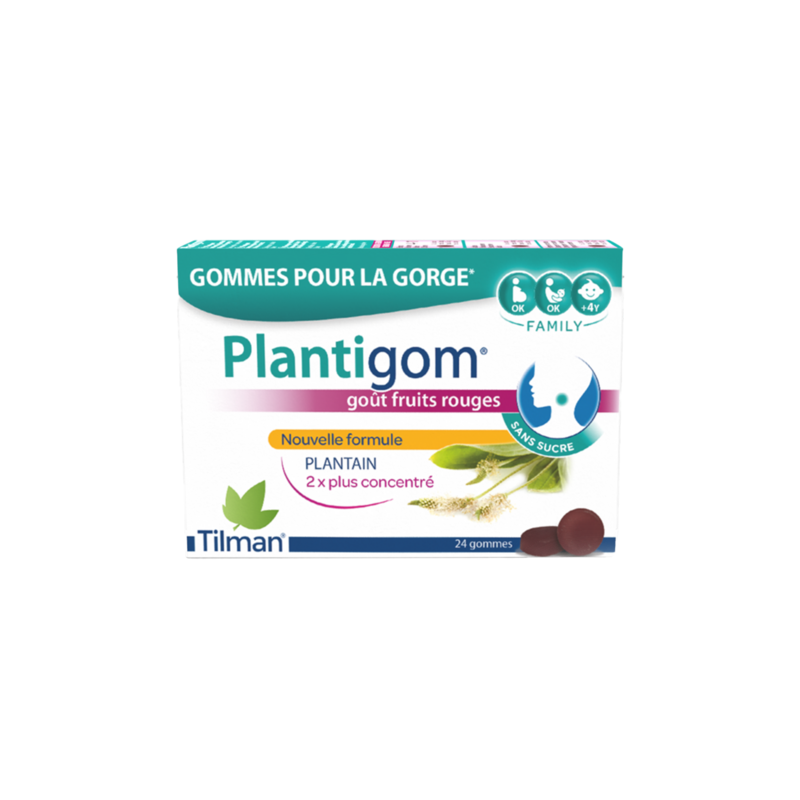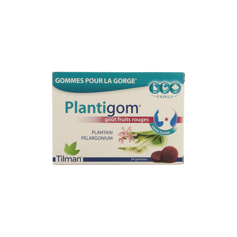 Plantigom associe les bienfaits du plantain et du pélargonium dans une gomme à sucer pour la gorge.