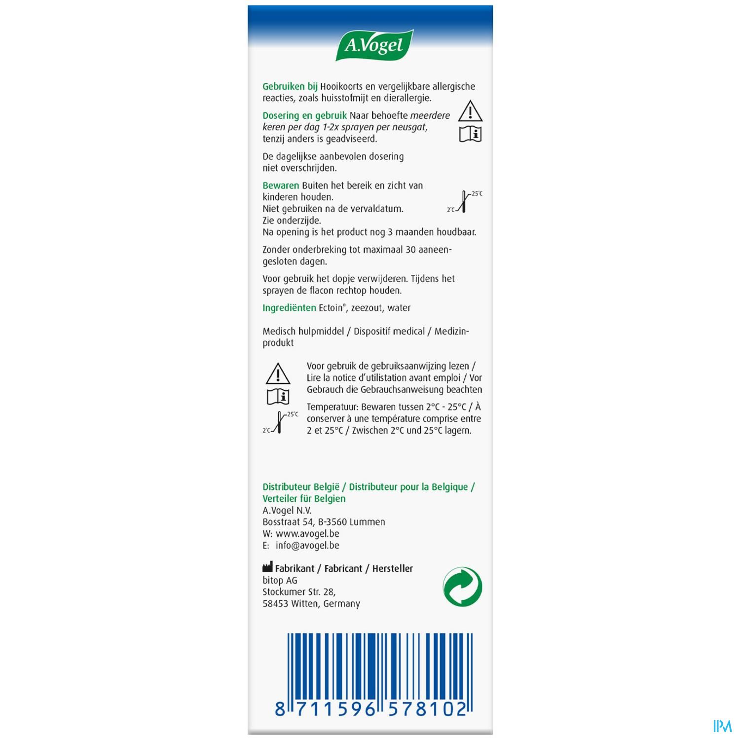 Pollinosan Spray nasal de A.Vogel est un dispositif médical qui est utilisé en cas de rhume des foins, allergies aux poussières, aux desquamations de la peau ou aux poils.