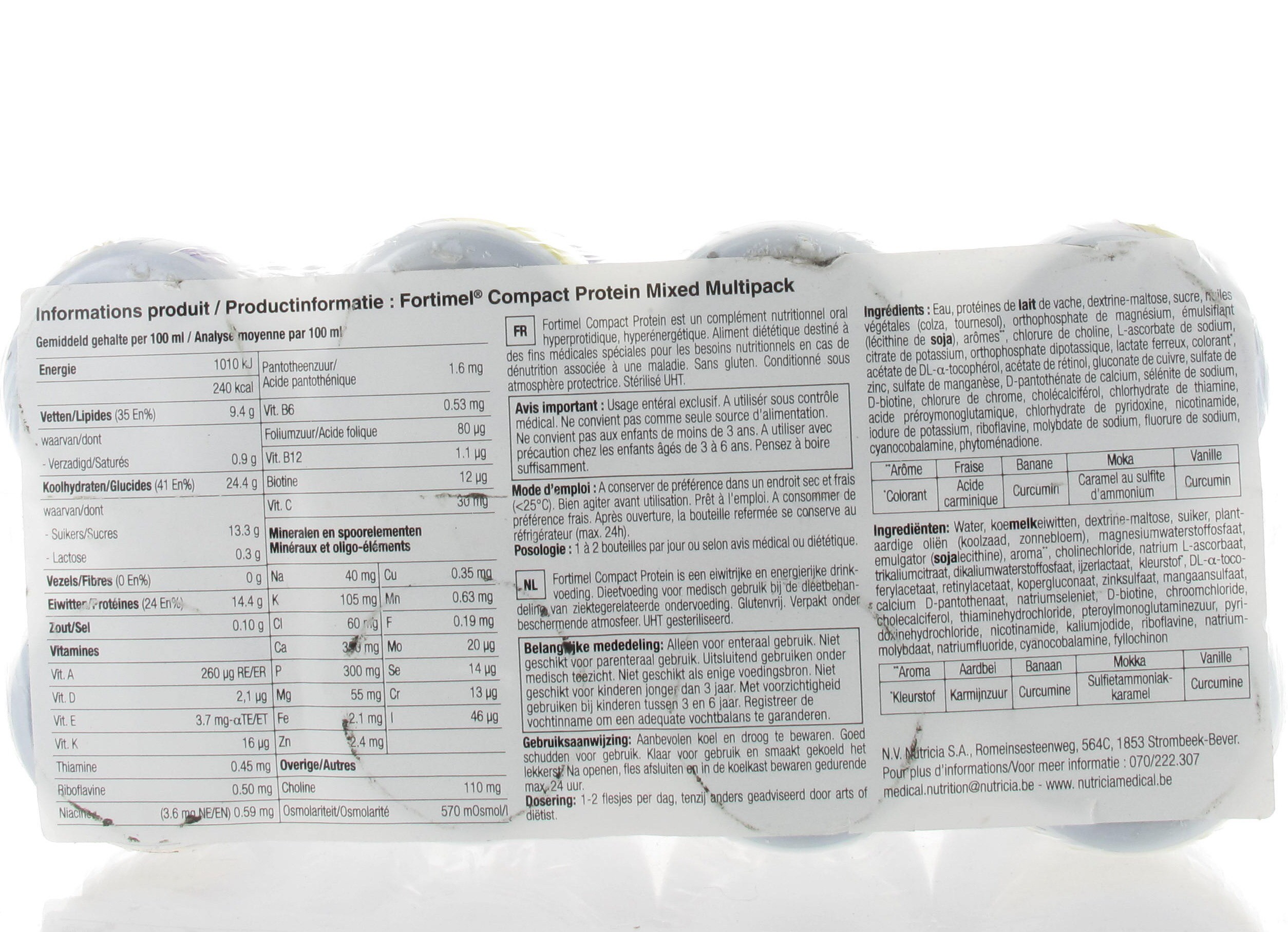 - Bouteille compacte : permet d'obtenir en moins de gorgées les mêmes apports nutritionnels qu'une bouteille de 200 ml
