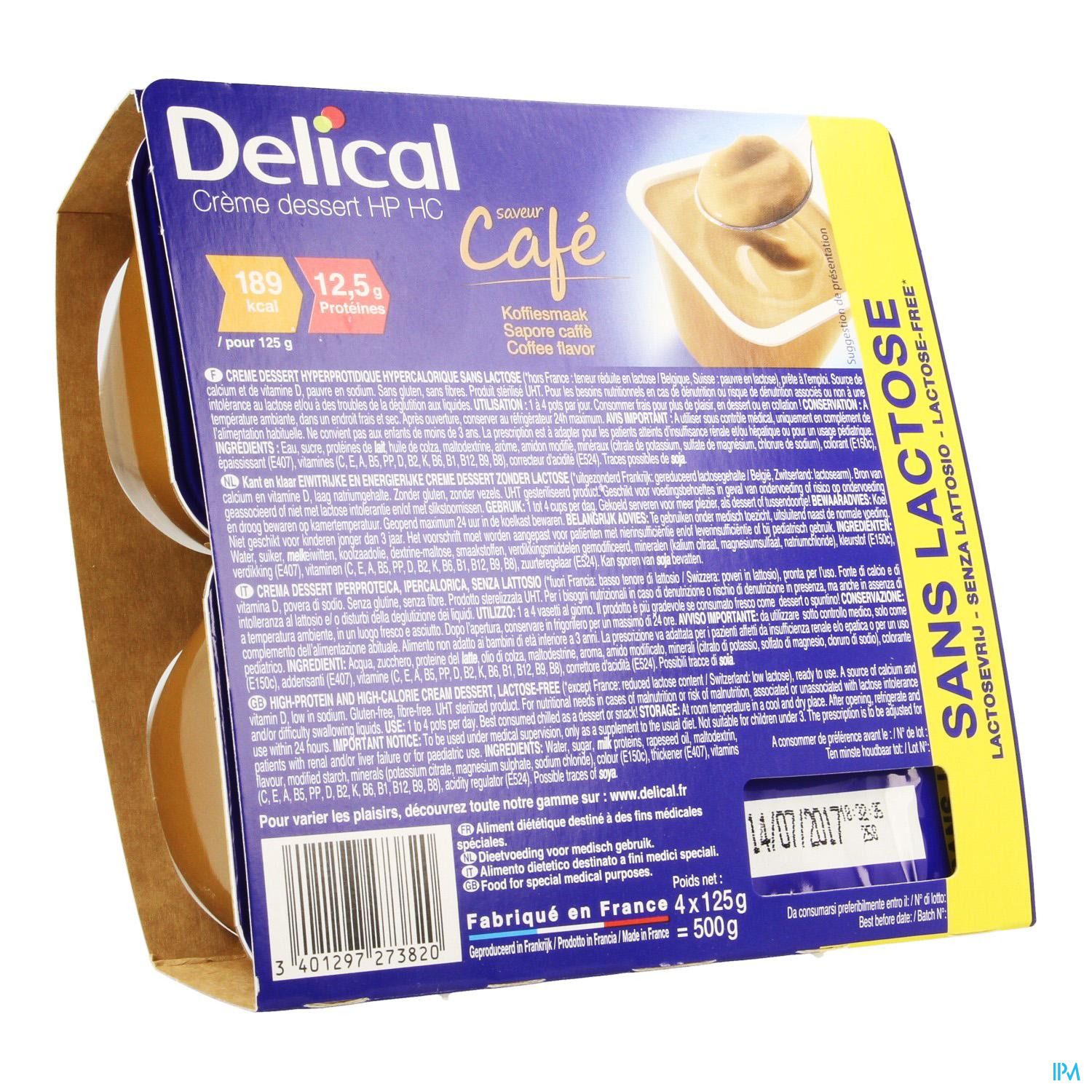 Delical Crème Dessert est un aliment diététique destiné à des fins médicales spéciales hyperprotidique et hypercalorique. Il ne contient pas de lactose. Cet aliment a une saveur de café.