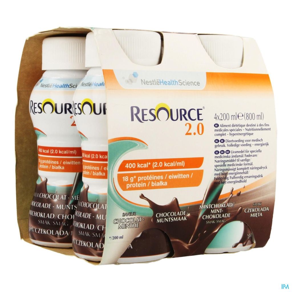 Vous pouvez commander en ligne resource 2.0 chocolat-menthe 4 x 200 ml, distribué(e) par nestle sur Pharmacodel, votre pharmacie en ligne.