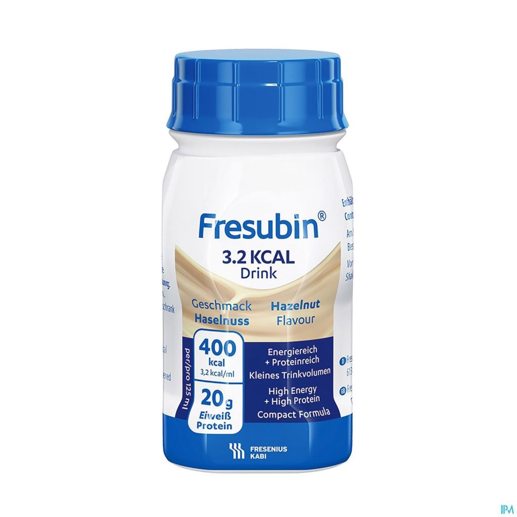 Fresubin 3,2 KCAL Drink est une alimentation buvable complète à usage médical, riche en énergie (400 kcal/bouteille) et en protéines de haute qualité (20 g/bouteille) dans une petite bouteille. Cet aliment fournit à l'organisme l'énergie indispensable lorsque l'alimentation habituelle ne suffit pas ou qu'un apport de nutriments supplémentaires est nécessaire. La formule riche contient des protéines facilement absorbables et toutes les vitamines et minéraux essentiels. C'est un aliment prêt à l'emploi qui peut être utilisé comme source unique de nutrition.