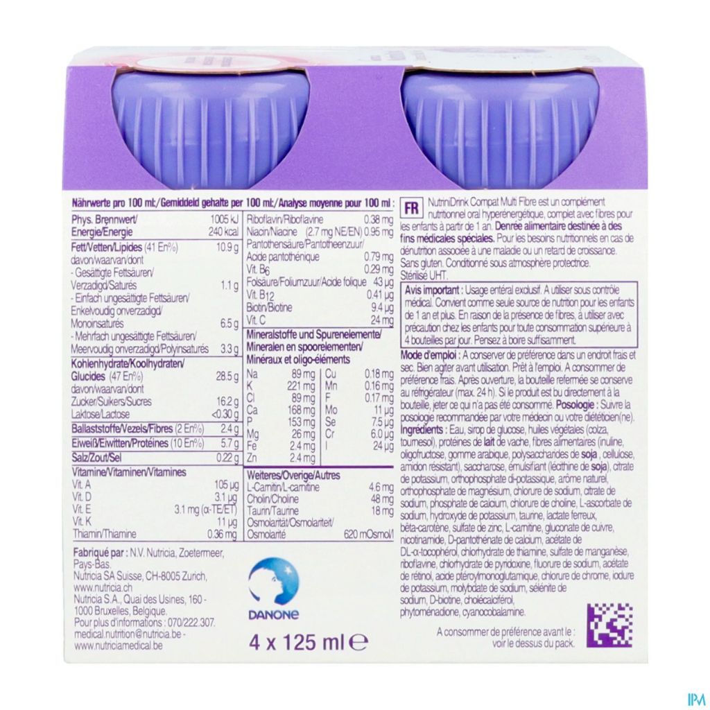 NutriniDrink ® Compact Multi Fibre est une denrée alimentaire destinée à des fins médicales spéciales. Pour les besoins nutritionnels en cas de dénutrition associée à une maladie ou un retard de croissance, pour les enfants à partir de 1 an.