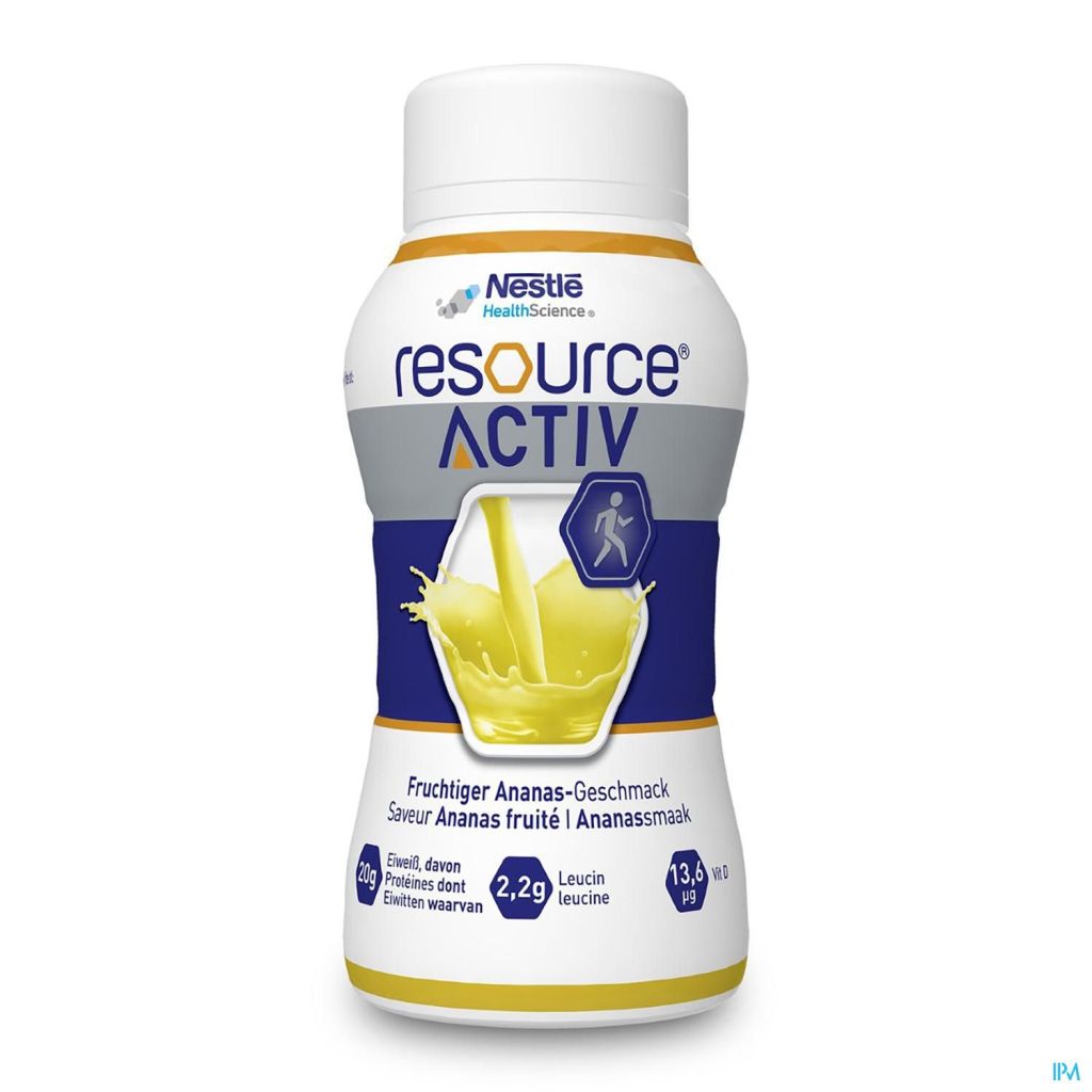Saveur ananas : eau, protéines de LAIT, sirop de glucose, huiles végétales (tournesol, colza), saccharose, fibres (fructo-oligosaccharides, inuline), minéraux (lactate de calcium, chlorure de potassium, citrate de calcium, citrate de sodium, citrate de magnésium, oxyde de magnésium, sulfate de fer, sulfate de zinc, sulfate de manganèse, sulfate de cuivre, sélénate de sodium, fluorure de sodium, molybdate de sodium, chlorure de chrome, iodure de potassium), huile de poisson, émulsifiant (E471), L-leucine, bitartrate de choline, vitamines (C, E, B6, acide pantothénique, niacine, D, biotine, acide folique, A, K, B12, thiamine, riboflavine) L-carnitine, stabilisant (E407), arômes, taurine, colorant (E160a). Sans gluten.
