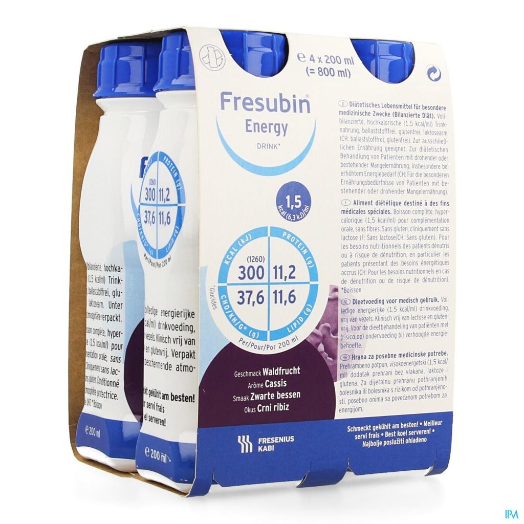 Fresubin Energy DRINK est une boisson nutritionnelle complète, riche en énergie (1,5 kcal/ml), sans fibres. Cet aliment fournit à l'organisme l'énergie indispensable lorsque l'alimentation habituelle ne suffit pas ou qu'un apport de nutriments supplémentaires est nécessaire. La formule riche contient des protéines facilement absorbables et toutes les vitamines et minéraux essentiels. C'est un aliment prêt à l'emploi qui peut être utilisé comme source unique de nutrition.