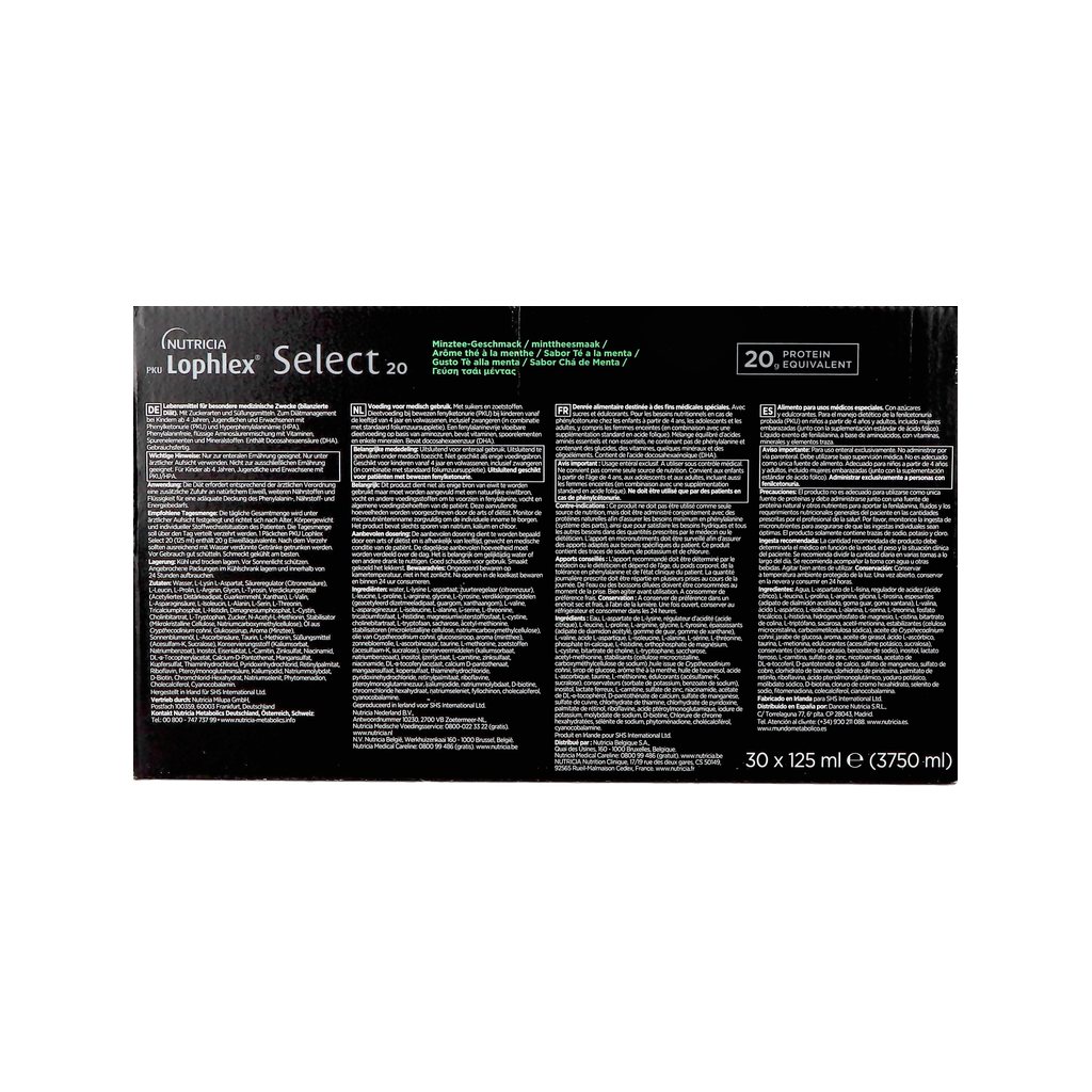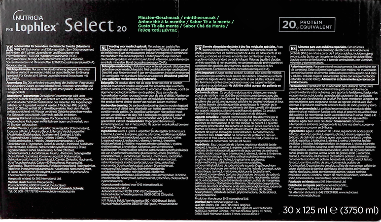 PKU Lophlex Select 20 est un régime à usage médical. La nutrition médicale est conseillée par un médecin ou un diététicien.