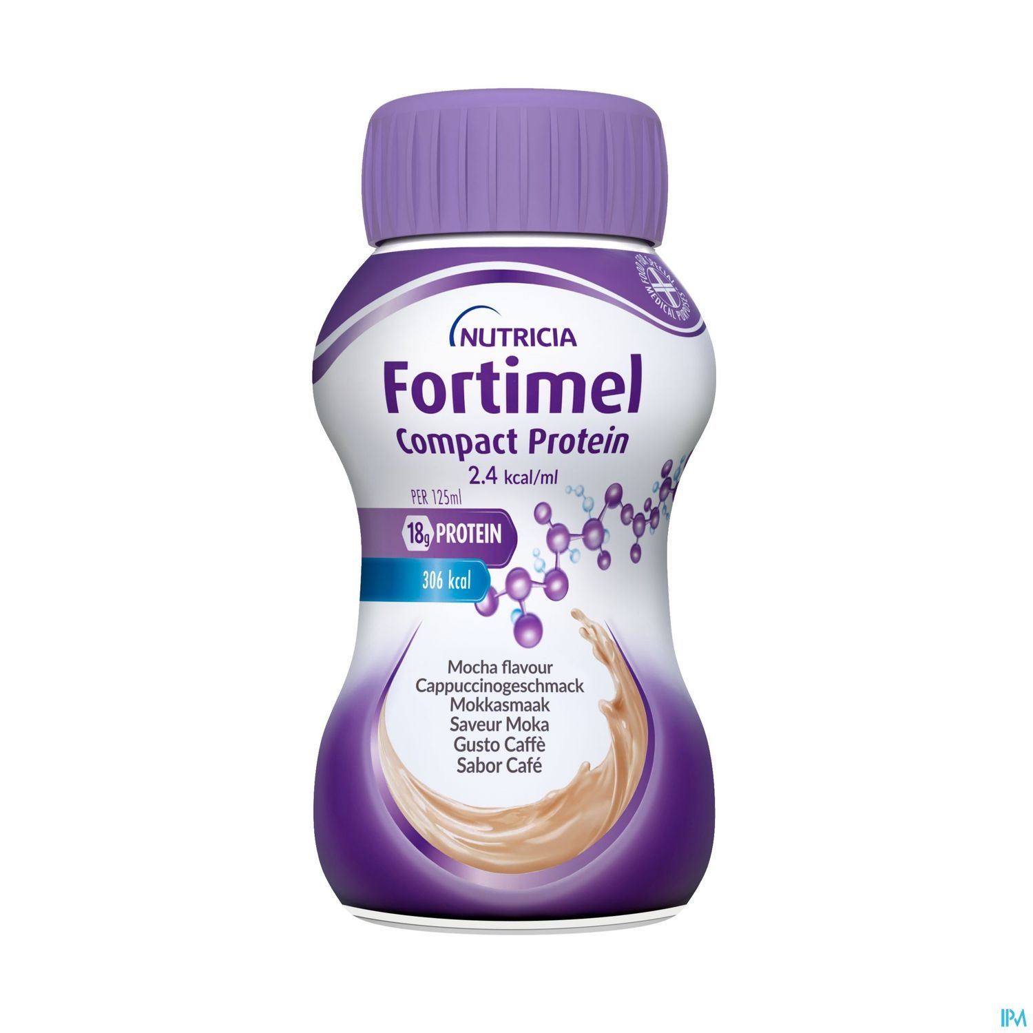Mais encore? Fortimel Compact Protein 2.4kcal est sans gluten, contient du soja et du lait. Seulement 0,35 g de lactose par 100ml.