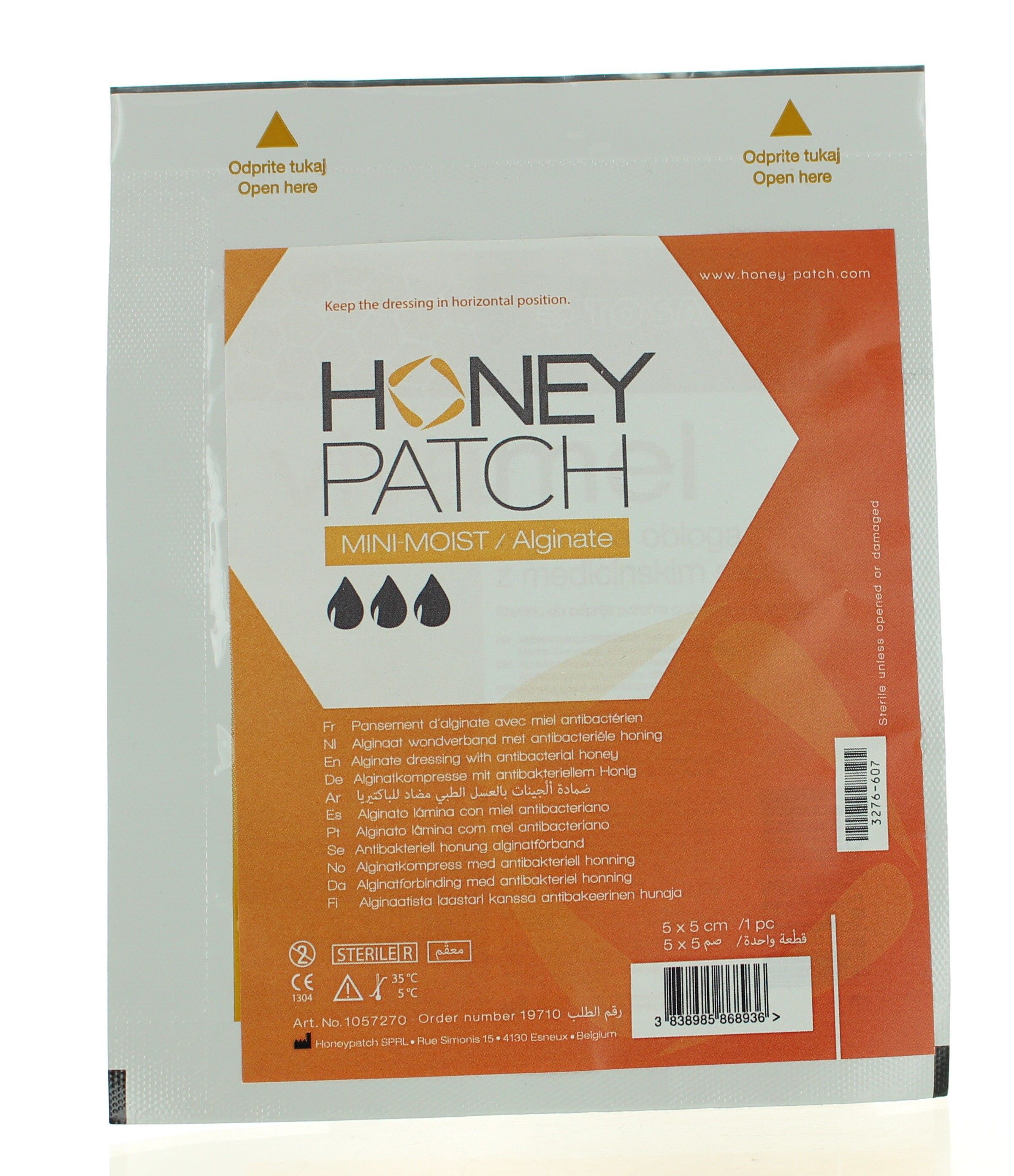 Honeypatch Mini Moist est un pansement d'alginate avec miel antibactérien.