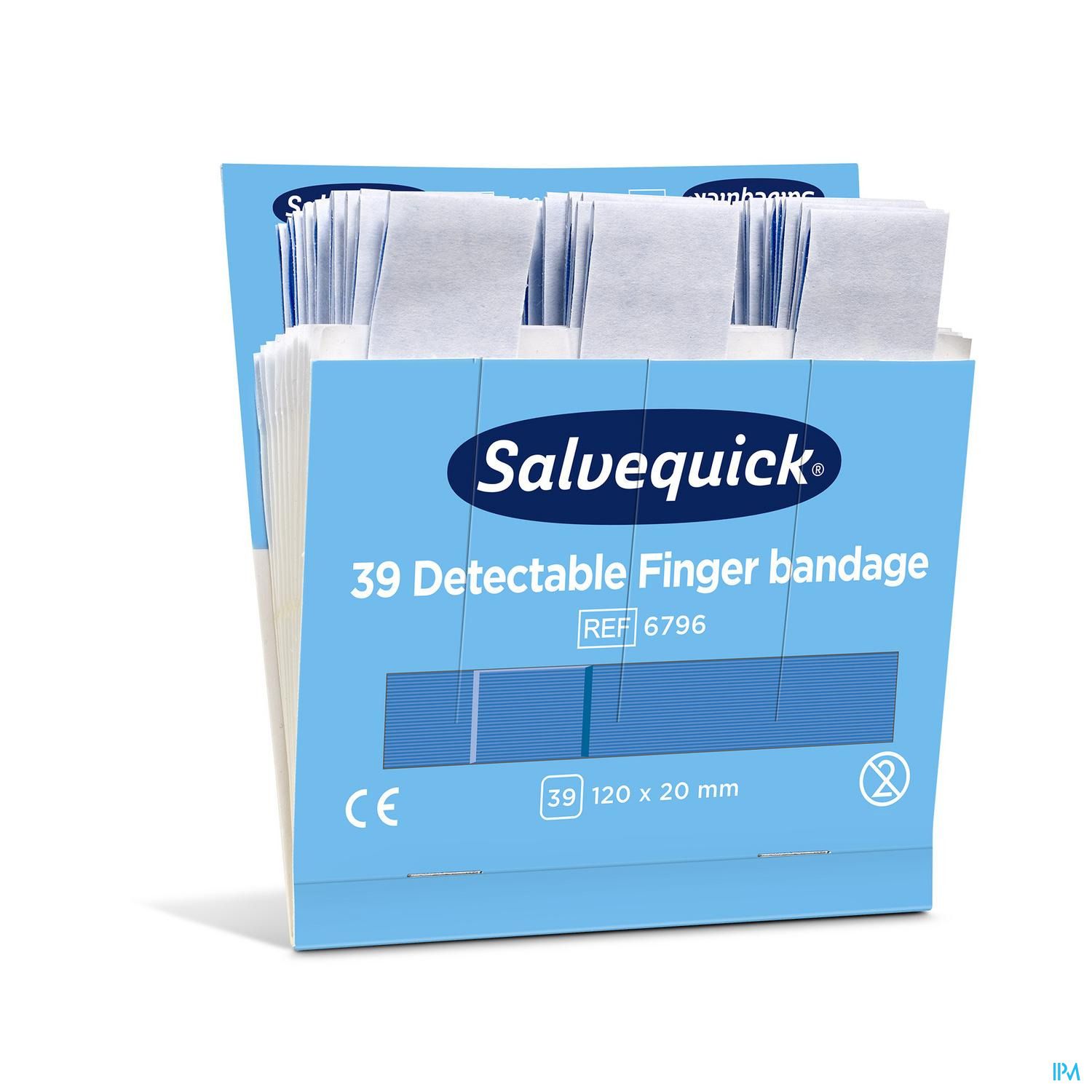 Les pansements bleus détectables Salvequick pour les doigts sont des pansements bleus extra longs qui peuvent être facilement enroulés autour du doigt. Souples et flexibles, ils sont détectables par la plupart des détecteurs de métaux utilisés dans l'industrie alimentaire. Nettoyez la plaie, assurez-vous qu'elle n'est pas infectée et changez le plâtre tous les jours.