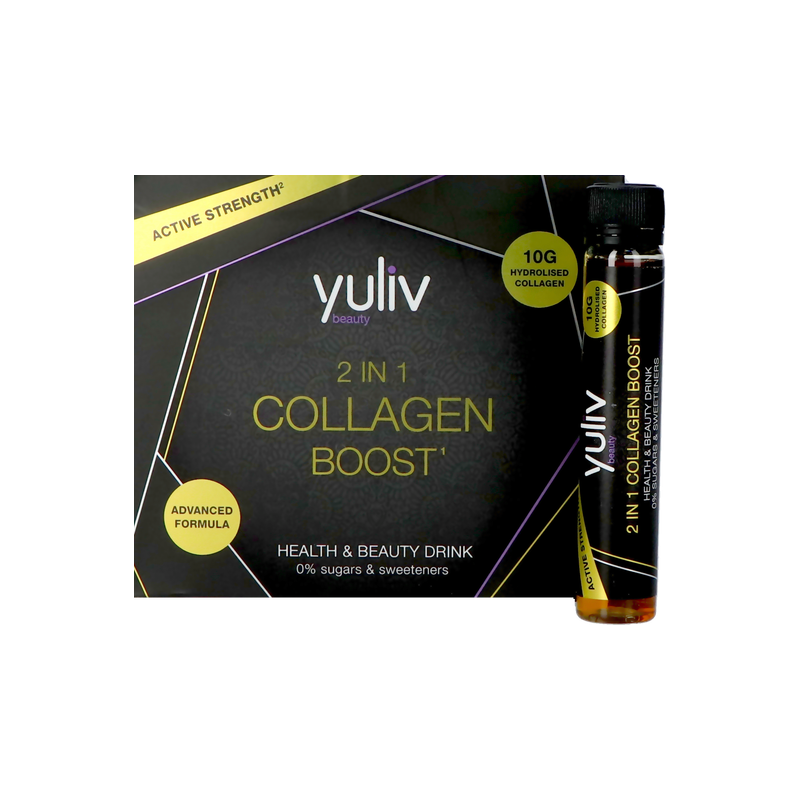 Yuliv Collagen Boost apporte un complément quotidien de la protéine la plus importante de notre corps (le collagène). Cela aide non seulement à soulager les douleurs articulaires, mais aussi à renforcer les ongles et à augmenter le volume des cheveux. De plus, il rend la peau plus ferme et réduit les rides.