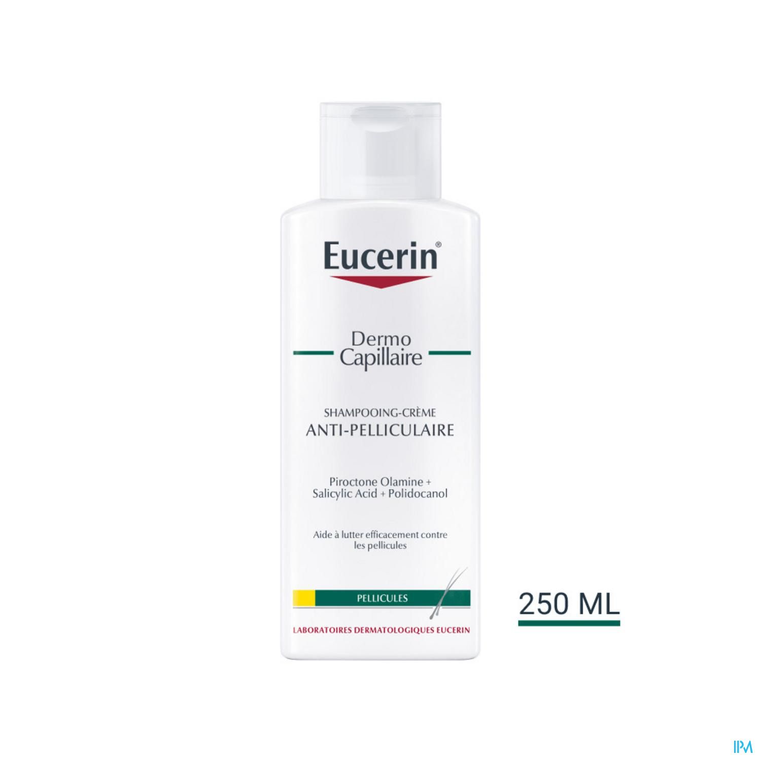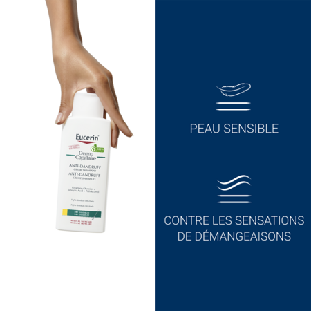 Eucerin DermoCapillaire ANTI-ROS CRÈME SHAMPOO est spécialement développé pour les pellicules sèches. Il nettoie en douceur le cuir chevelu et les cheveux des flocons blancs et des résidus collants et réduit efficacement les démangeaisons dès la première utilisation. Ses ingrédients spéciaux donnent aux cheveux une brillance saine et souple.