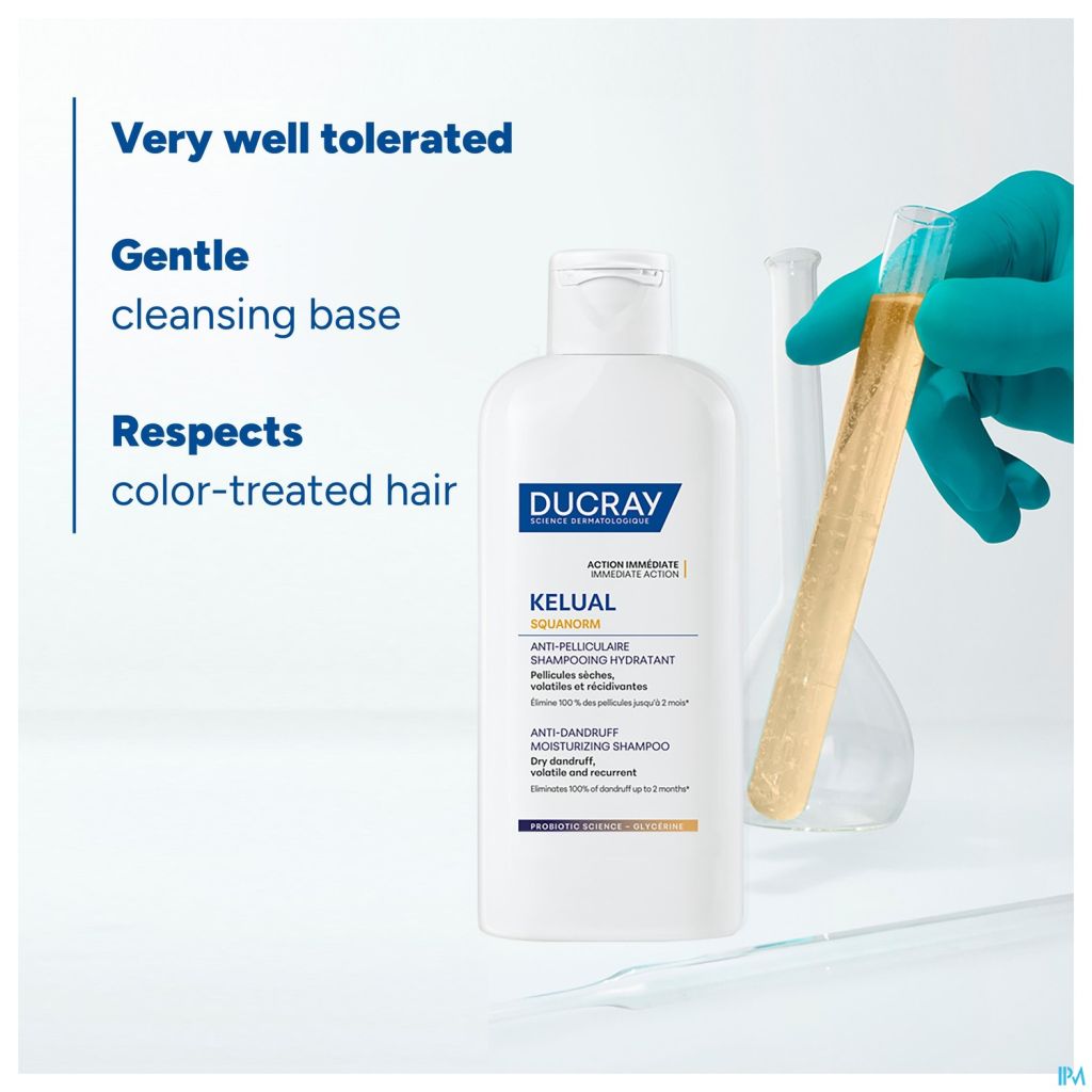 Shampooing antipelliculaire contre les pellicules sèches.