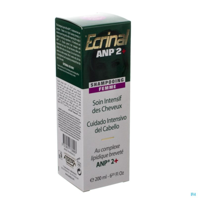 Le shampoing pour femme Ecrinal ANP2+ nettoie en douceur grâce à sa mousse onctueuse et douce qui respecte le cuir chevelu. Une seule application suffit. Dès le premier shampoing, les cheveux sont plus doux et plus brillants.