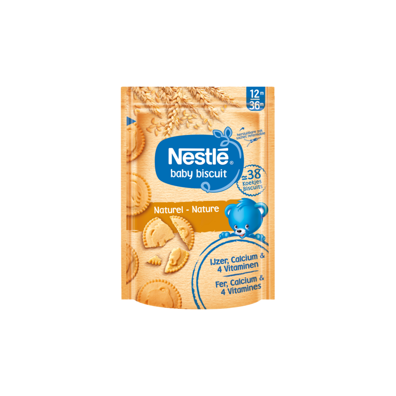 Nestlé Baby Biscuit Nature est un en-cas savoureux et à la fois gourmand et équilibré à base de céréales adapté aux bébés dès 12 mois. Le biscuit nature de Nestlé est riche en fer, en calcium et en 5 vitamines. Son sachet d'emballage est pratique et facile à transporter.