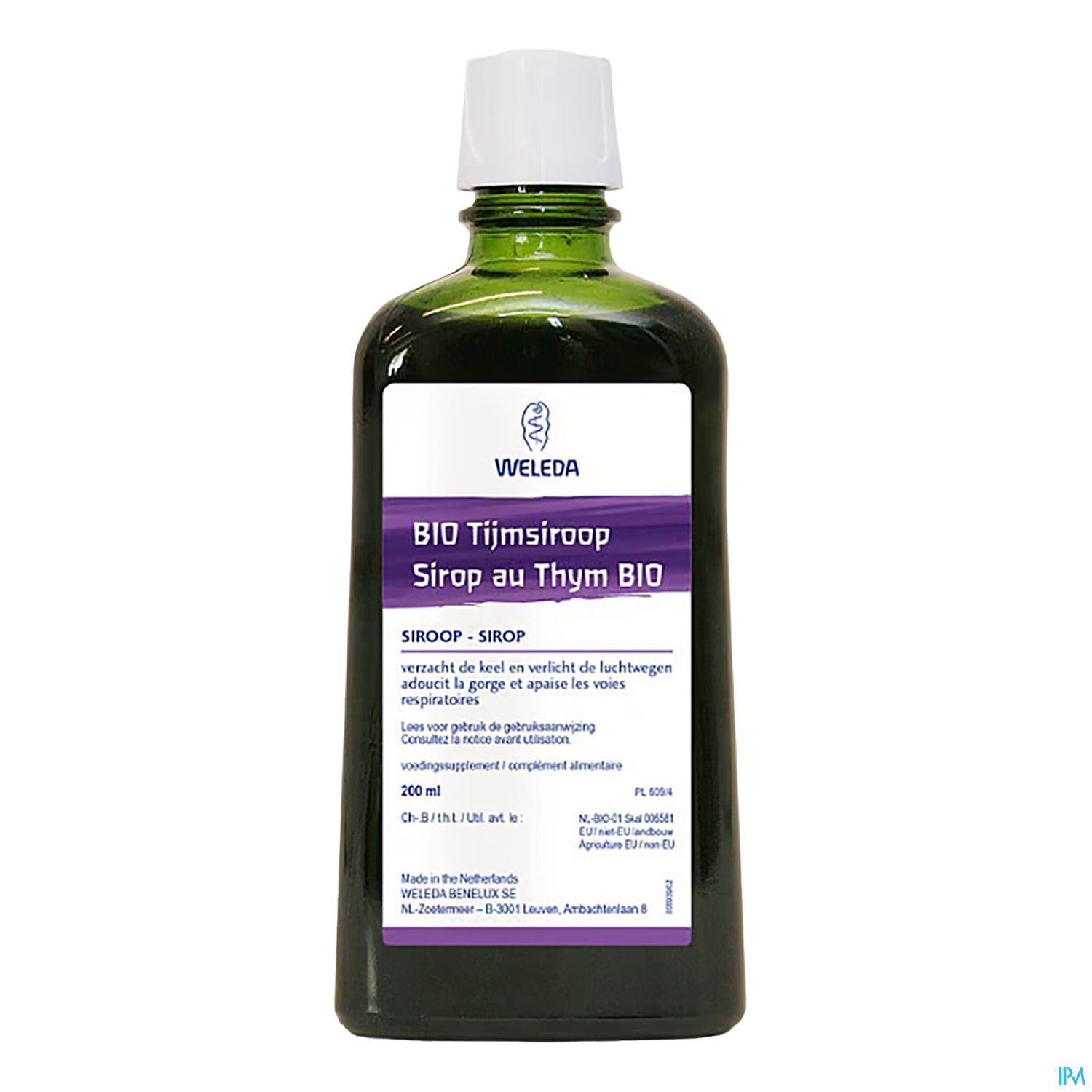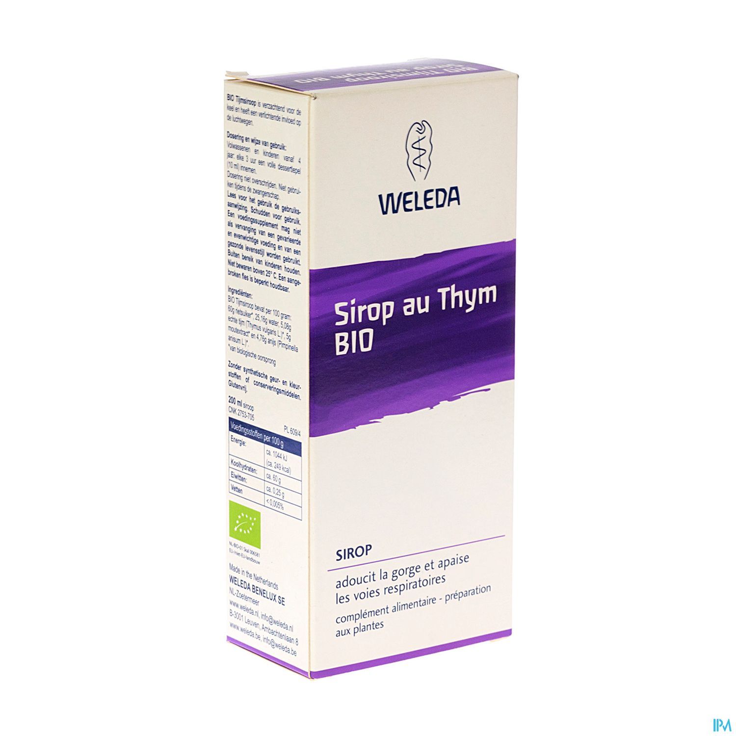Ingrédients Le sirop Bio Thym contient pour 100g : 60g de sucre de canne, 25,16g d'eau, 5,08g de thym vrai (Thymus vulgaris L.), 5g d'extrait de malt* et 4,76g d'anis (Pimpinella anisum L.). d'origine biologique.