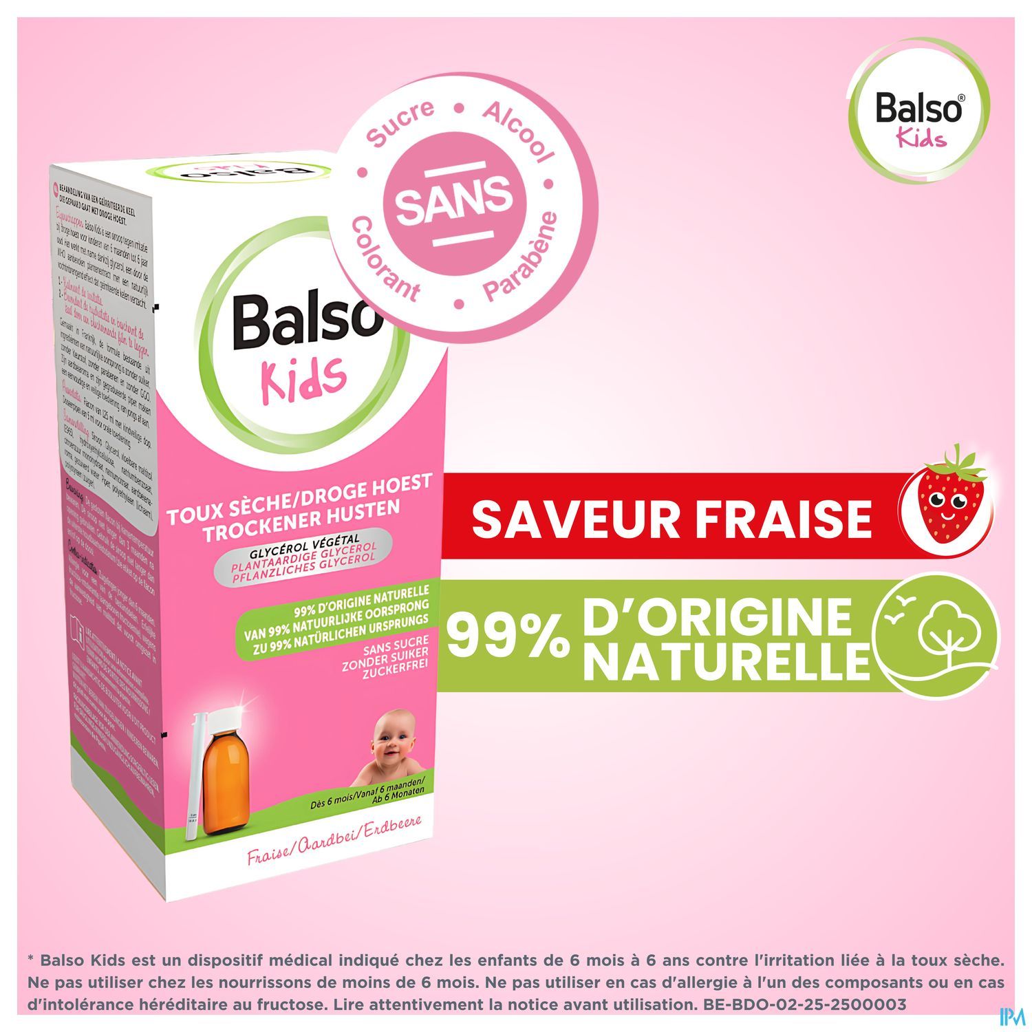 Fabriquée en France, sa formule composée d'ingrédients d'origine naturelle est sans sucre, sans colorant, sans paraben et sans OGM. Son arôme de fraise et sa pipette graduée permettent une administration facile et sûre dès le plus jeune âge.