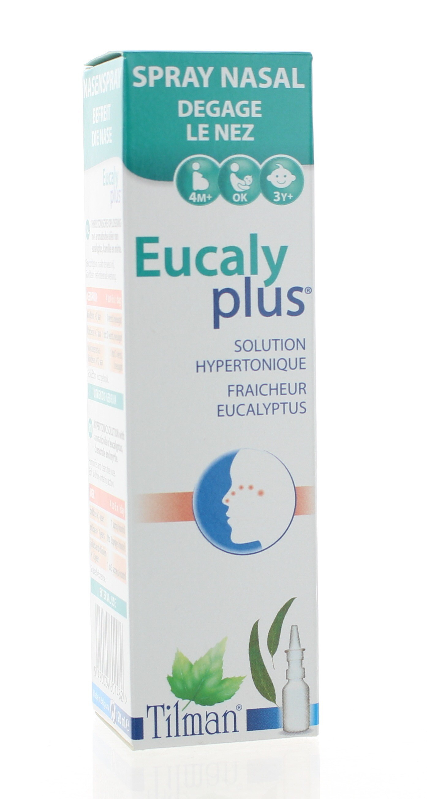 Tilman Eucalytpus Spray nasal est une solution hypertonique additionnée d'huiles aromatiques d'eucalyptus, de camomille et de myrte. Ce spray humidifie et dégage le nez. Action douce et non irritante.