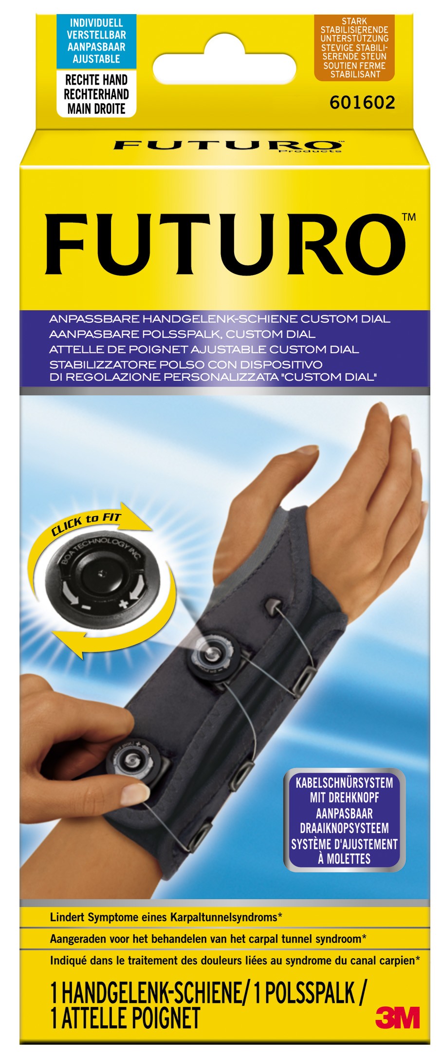 L'attelle de poignet ajustable Futuro procure un soutien rigide (confortable) aux poignets. Elle convient aux poignets fragilisés, blessés ou ayant subit une immobilisation. L'attelle est indiquée dans le traitement des douleurs liées au canal carpien. Elle peut être portée toute la journée ou lors des activités douloureuses.