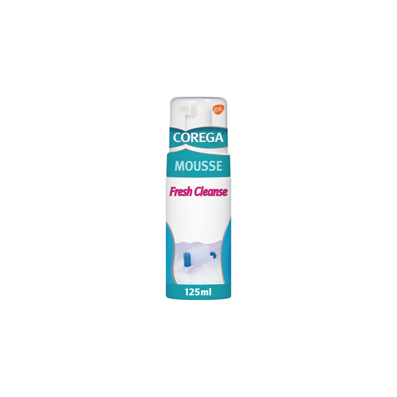Tenez fermement votre prothèse. Agitez le flacon. Appliquez la mousse sur la prothèse en deux pressions complètes. Brossez pendant 90s avec une brosse souple. Rincez sous l'eau.