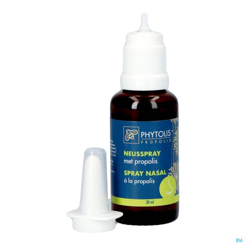 Spray nasal à la propolis.Le spray nasal de Phytolis Propolis favorise une bonne hygiène nasale et le dégagement du nez, sans impression de dessèchement, grâce à la synergie du sel de mer et des extraits biologiques de propolis, d'echinacéa et de thym.
