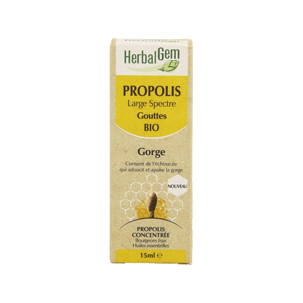 La propolis est une substance résineuse récoltée par les abeilles sur les bourgeons afin de protéger la ruche des agressions externes. Elle est enrichie d'échinacée et d'huiles essentielles qui soutiennent le système de défense de notre corps.