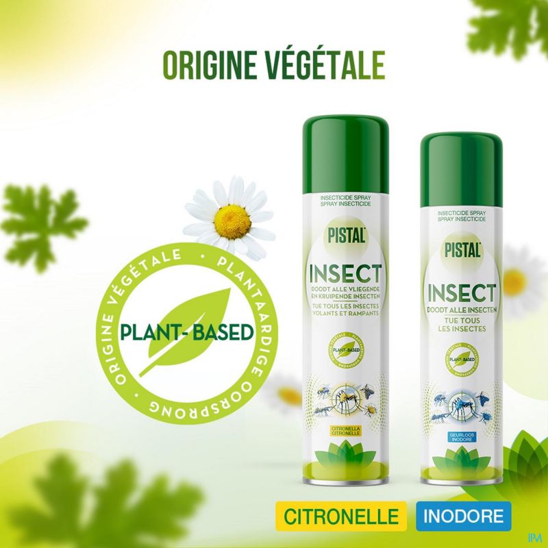 Pistal® Insect Citronelle tue immédiatement et efficacement tous les insectes volants et rampants: moustiques, mouches, puces, guêpes, punaises de lit, acariens et tiques.