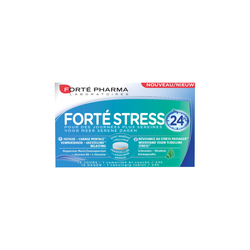 Forté Stress 24h est la solution idéale pour vous aider en période de stress. Une formule complète associant plantes adaptogènes et magnésium marin, dans un comprimé double couche à double libération, pour un effet immédiat et durable.