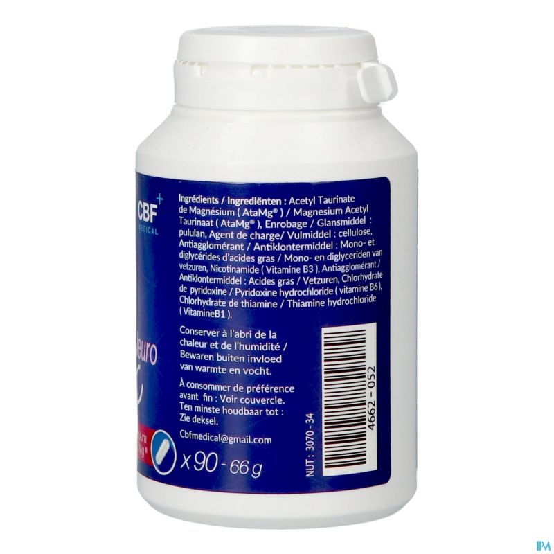 Ingrédients : Acetyl Taurinate de Magnésium : 950 mg ; Magnésium : 64,75 mg ; Vitamine B1 Thiamine HCl : 11mg ; Vitamine B3-nicotinamide : 16 mg ; Vitamine B6 Pyridoxine HCl : 14 mg