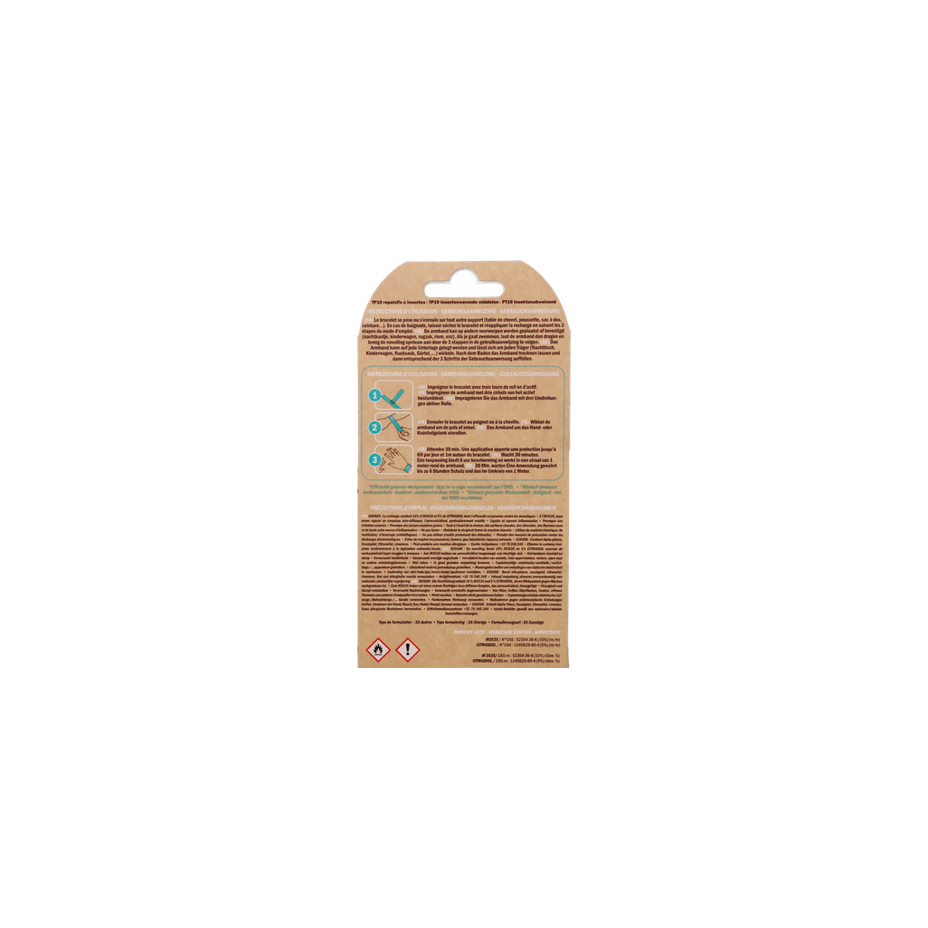 Chaque boîte de bracelet contient une dose de solution anti-moustiques (pour 1 mois d'utilisation répétée). Attention aux biocides. Lisez l'étiquette et les informations sur le produit avant de l'utiliser.