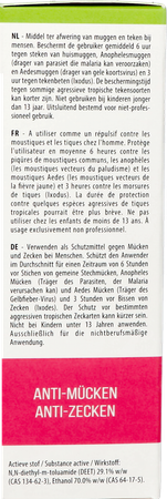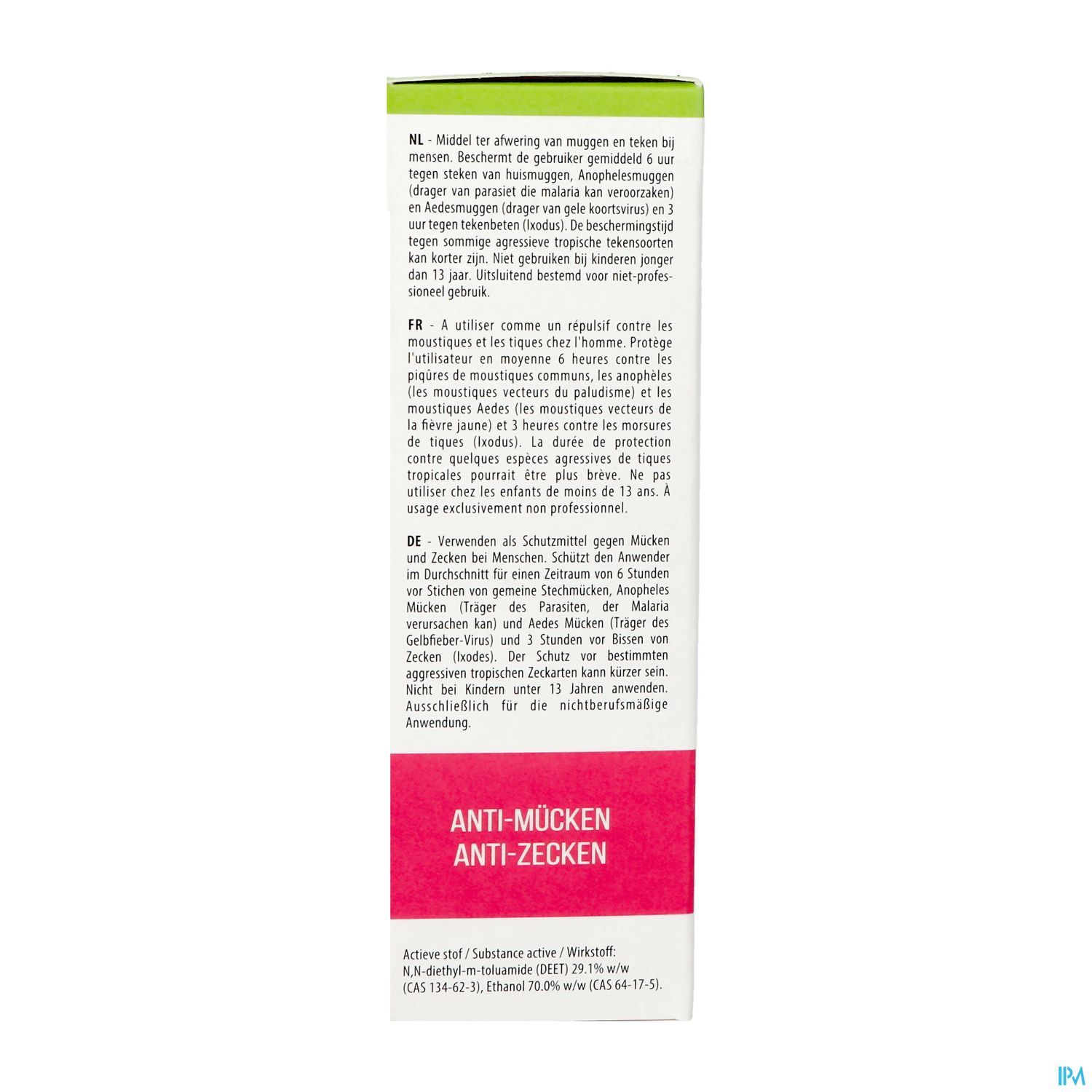 - Laver la peau traitée lorsque la protection contre les moustiques ou les tiques n'est plus nécessaire ou en cas d'irritation.