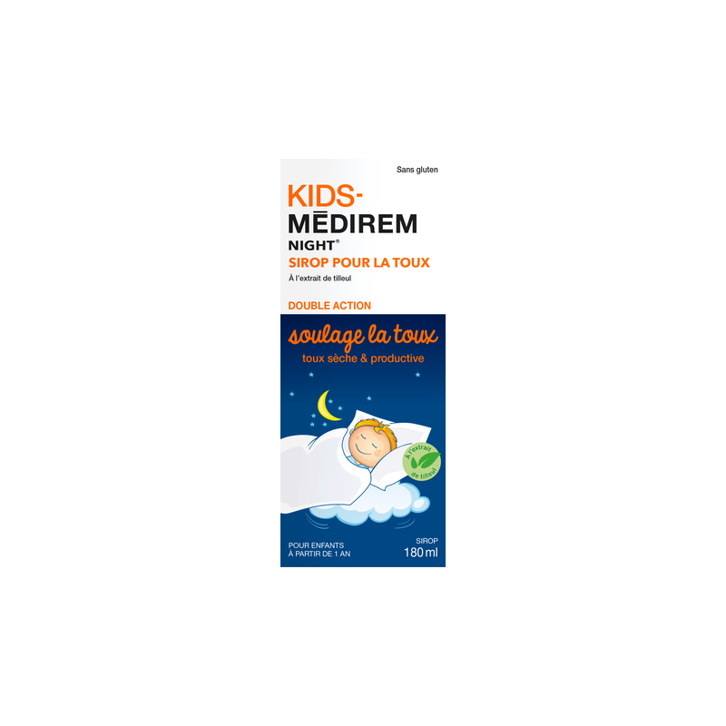 Les ingrédients de KIDS-Medirem NIGHT sont des extraits naturels de plantes qui soulagent et apaisent la toux nocturne, sèche ou grasse. Il réduit la toux pendant la nuit et permet à vos enfants de mieux dormir.