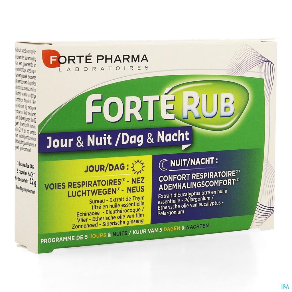 FORTE RUB CAPSULES 10 + 5 JOUR ET NUIT est un médicament : merci de lire attentivement la notice. Pas d'utilisation prolongée sans avis médical.