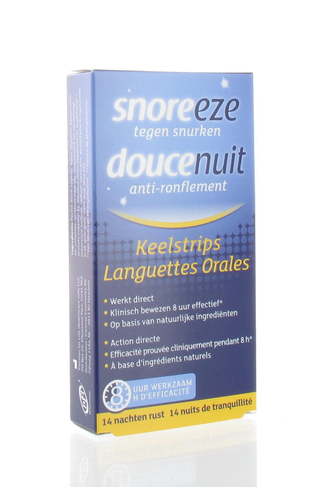 Les Languettes Orales Doucenuit des laboratoires Passion for Life Healthcare ciblent la cause principale du ronflement. Grâce à sa double action, la languette raffermit et tapisse les tissus mous situés au fond de la gorge et contribue ainsi à lutter contre les ronflements pendant une durée pouvant atteindre 8 heures. Les Languettes Orales Doucenuit se dissolvent rapidement pour un effet immédiat.