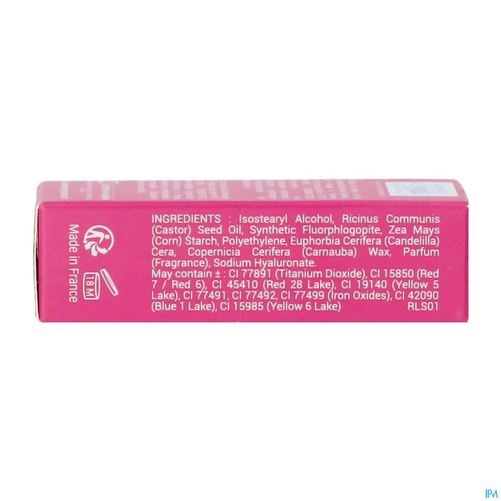 INGREDIENTS : Ricinus Communis (Castor) Seed Oil, Polybutene, Octyldodecanol, Bis-Diglyceryl Polyacyladipate-2, Hydrogenated Polydecene, Polyglyceryl-2 Triisostearate, Synthetic Fluorphlogopite, Zea Mays (Corn) Starch, Oryza Sativa (Rice) Bran Wax, C12-15 Alkyl Benzoate, Synthetic Wax, Myristyl Lactate, Ethylene/Propylene Copolymer, Butyrospermum Parkii (Shea Butter), Parfum (Fragrance), Stearalkonium Hectorite, Propylene Carbonate, Tocopherol, Ammonium Glycyrrhizate. May contain: CI 77891 (Titanium Dioxide), CI 15850 (Red 7 / Red 6), CI 45410 (Red 28 Lake), CI 19140 (Yellow 5 Lake), CI 77491, CI 77492, CI 77499 (Iron Oxides), CI 42090 (Blue 1 Lake), CI 15985 (Yellow 6 Lake) RLS02