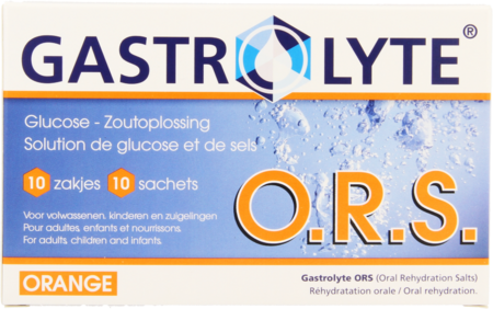 Gastrolyte O.R.S. Orange est une solution de glucose et de sels. C'est une préparation instanée avec un goût d'orange agréable. C'est un O.R.S. (= Oral Rehydration Salts), afin de soutenir un bon équilibre des fluides.