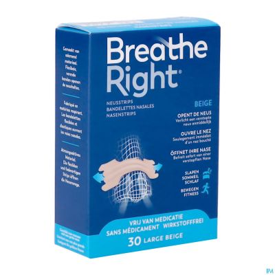 Les bandelettes nasales ouvrent le nez jusqu'à 38 % mieux que les sprays nasaux. La recherche a également montré que 90 % des utilisateurs de Breathe Right bénéficient d'un sommeil de meilleure qualité, avec un effet positif sur les performances diurnes. Les bandes sont disponibles en différentes tailles, et sont destinées aux peaux normales ou sensibles. Ces bandes sont destinées à une peau normale et sont de taille Large.
