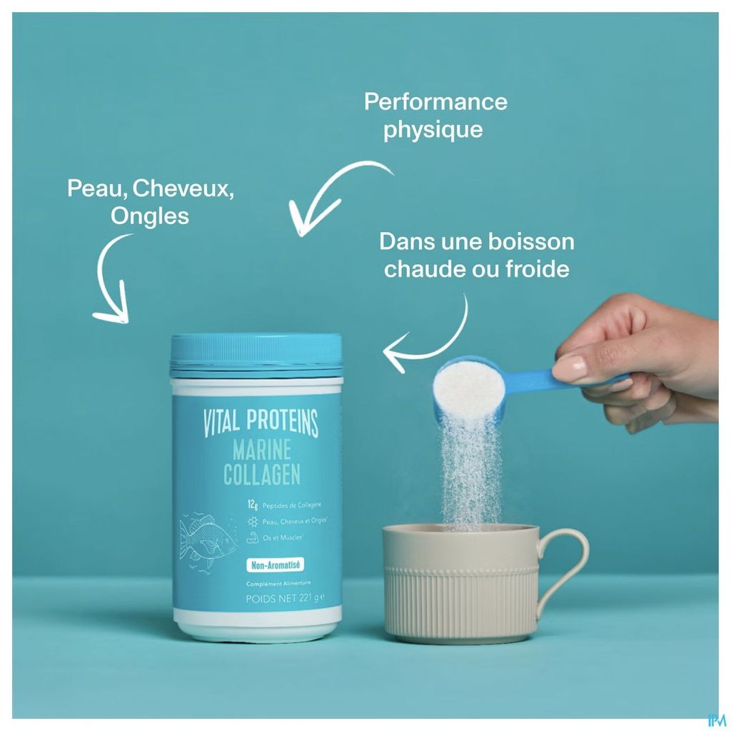 Le collagène marin de Vital Proteins est facilement digestible et soluble dans les liquides froids ou chauds. Combinez 1 à 2 mesures avec 336 ml de liquide et mélangez bien. A consommer une fois par jour.