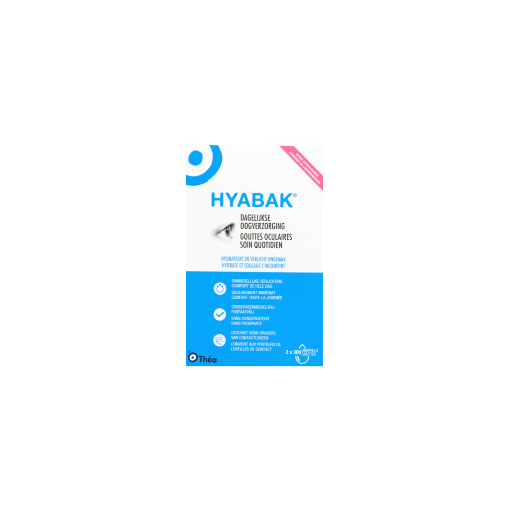 Hyabak est une solution pour l'hydratation et la lubrification de l'oeil et des lentilles de contact. Elle contient 0,15% de hyaluronate de sodium.